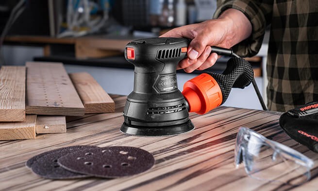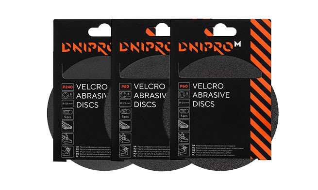 Шліфмашина ексцентрикова Dnipro-M PE-29S + Круг шліфувальний самозачіпний (Р60, Р80, Р240)