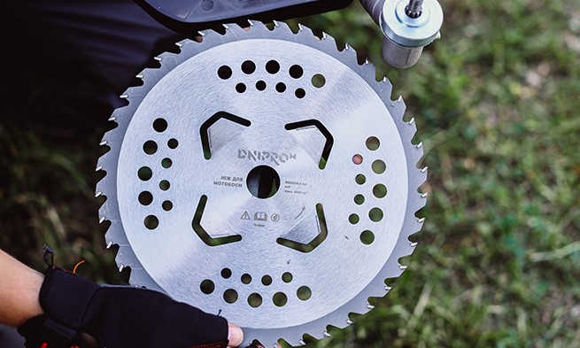 - отвори в диску знижують його вагу та забезпечують краще охолодження, додатковий викид трави та запобігають налипанню на захисному кожусі;