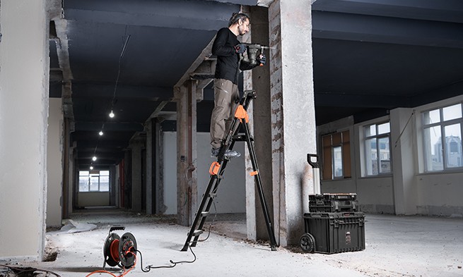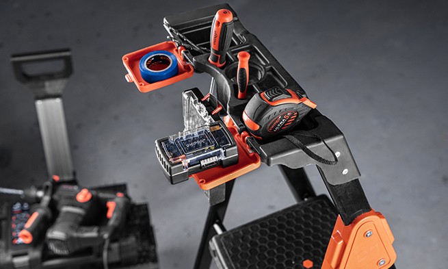 Наявність органайзера з отвором для інструментів і витратних матеріалів прискорює роботу на висоті, робить її комфортнішою.